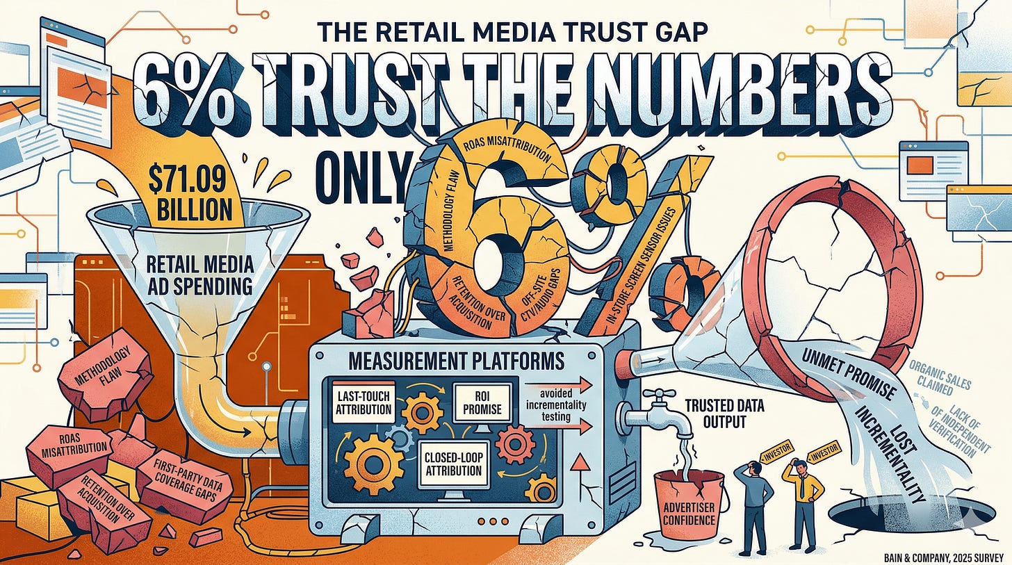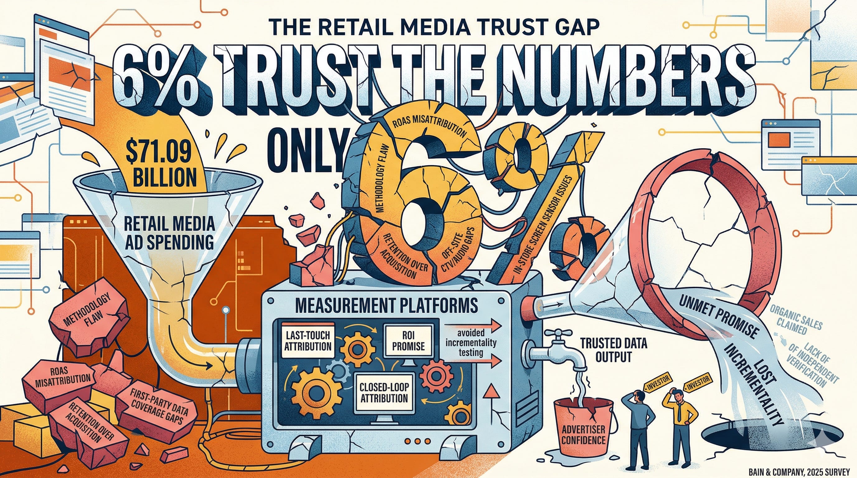 “Only 6% of advertisers fully trust retailers’ reported media metrics.” — Bain and Company, 2025